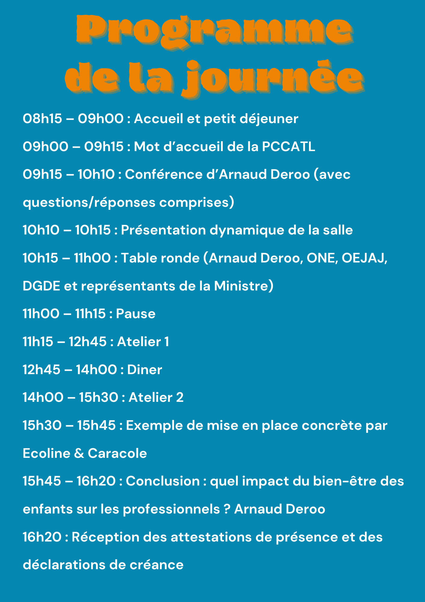 Cette journée est valorisable comme temps de formation par l’ONE pour les CATL.